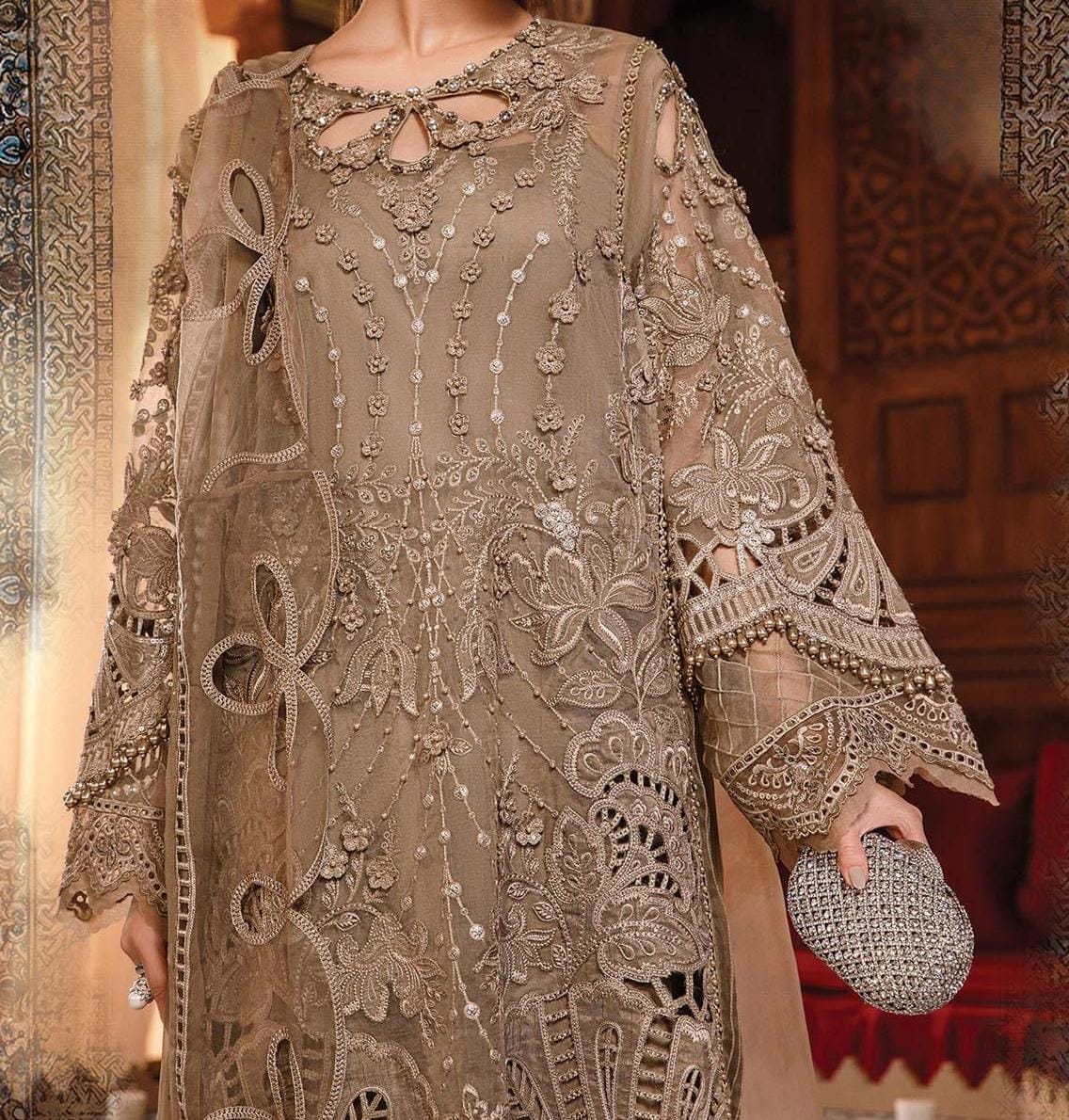 Fully embroidered sleeves featuring handwork & stone embellishments
